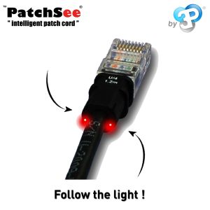Patchkablet fra Patchsee har 2 stk. plast fiber under kappen, sammen med kobberlederne. Plastfiberen er bøjer 180 grader tilbage i RJ45 stikket. Monter en lygte i den ene ende og så lyser den anden ende. Det tager nu kun få sekunder at identifisere hvor den anden ende er.